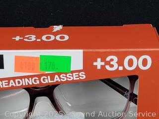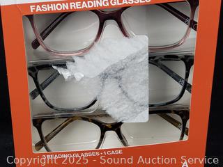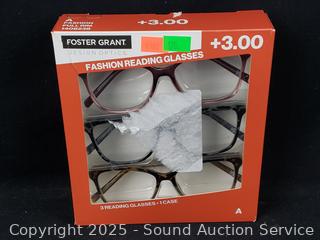 Lot #0178: 3 Foster Grant +3.0 Fashion Reading Glasses w/1 Case
