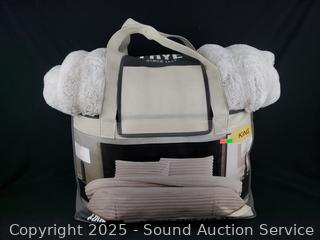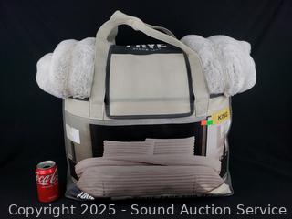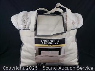 Lot #0198: 3pc Frye Beige Faux Fur Plush Comforter Set