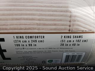 Shams have been washed, comforter don't see any issues. 108" x 98" comforter, 20" x 40" shams.