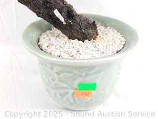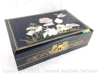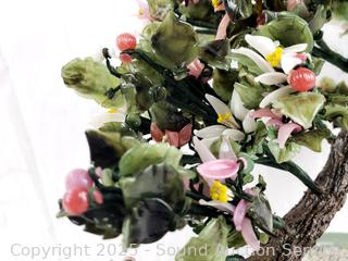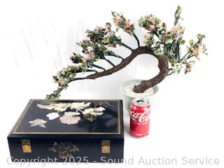 Lot #0096: Asian Glass Bonsai Tree & High Relief Jewelry Box