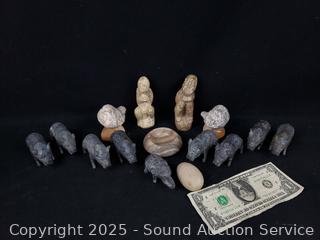 Lot #0116: Assorted Metal/Stone/Pottery Figures