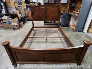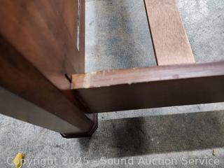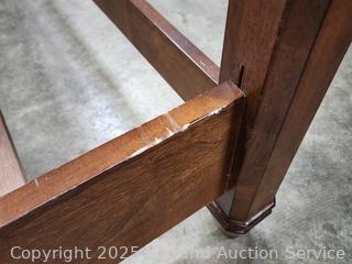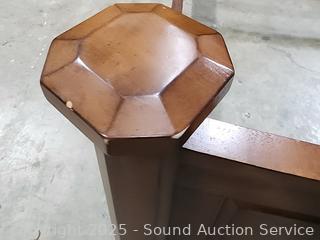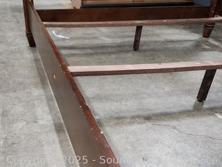 29" to 58" H x 66" W x 82" long rails. Some scuffs, wear to finish. Appears complete.
