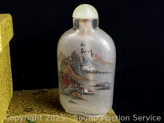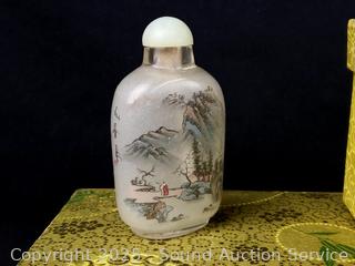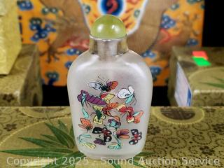 Lot #0055: Reverse Painted Glass Snuff Bottles, Eggs, Baoding Balls, Wood Tigers