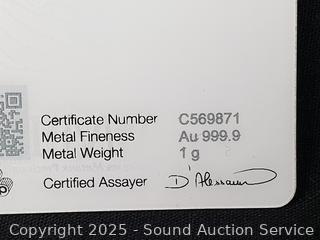 Lot #0034: Swiss Made PAMP Suisse 1g 999.9 Fine Gold Bar