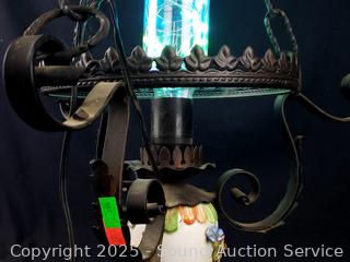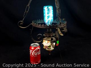 Approx. 41" H x 13" Dia" Dia. Has a string light bulb, appears to be functioning as intended.