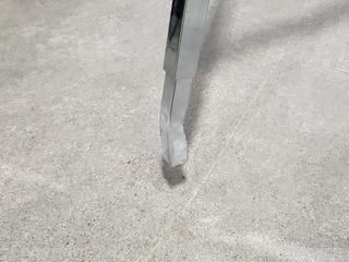 Adjustable height, approx. 45" to 69" H x 37" Dia. Signs of wear from use.