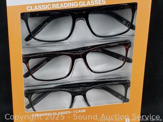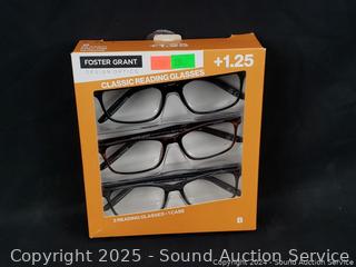 Lot #0128: 3 Foster Grant Classic +1.25 Reading Glasses w/1 Case