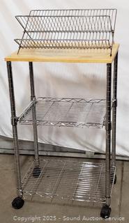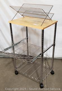 Lot #0032: 3-Tier Rolling Utility Cart & Folding Rack