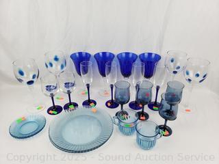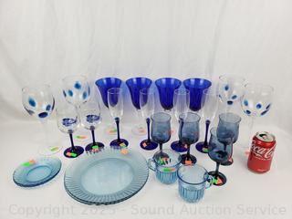 Champagne, Wine Glasses, Goblets, Scalloped 2 plates, 2 cups, 2 saucers. Refer to photos for more details.