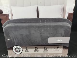 Lot #0105: Berkshire Loft Mink Gray Heated Plush Queen Blanket
