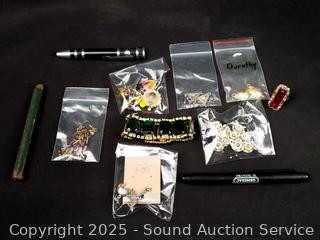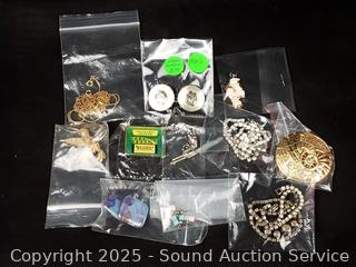 Gloves are sealed, unsure on the size, small/medium? 9.25" x 6.23" Ceramic Cookie Jars, Assorted Jewelry Refer to photos for lot contents.