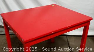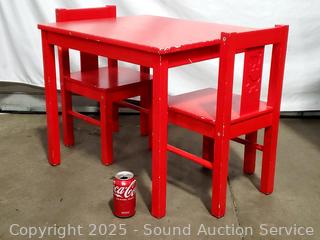 Lot #0026: Red painted Child's Table w/2 Chairs