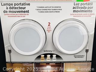 Lot #0199: 2pk Infinity X1 Motion Activated Rechargeable Puck Lights
