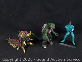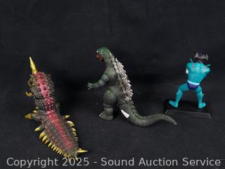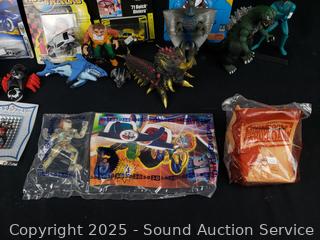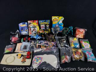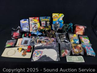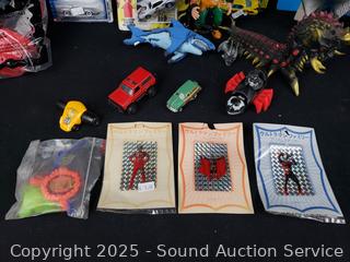 Diecast Cars, Godzilla Figures, McDonalds Toys, etc. Refer to photo for lot contents, more details.