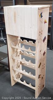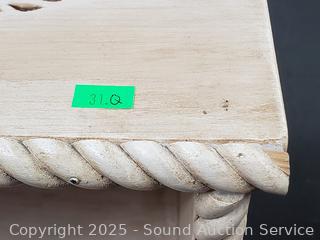 Distressed finish, don't see any major issues. 49" H x 19.5" W x 12" D.