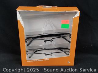 Lot #0170: 2 Feit Semi-Rimless Metal +1.25 Reading Glasses w/1 Case