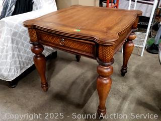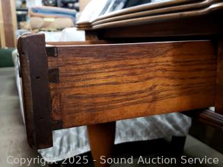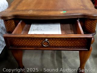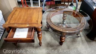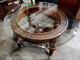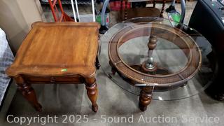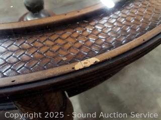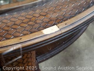 Lot #0017: Basket Weave & Oak Beveled Glass Top Coffee & Side Table