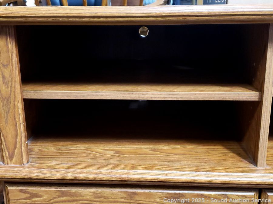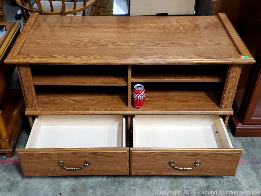 Lot #0303: Contemporary Oak 2-Drawer Media Console
