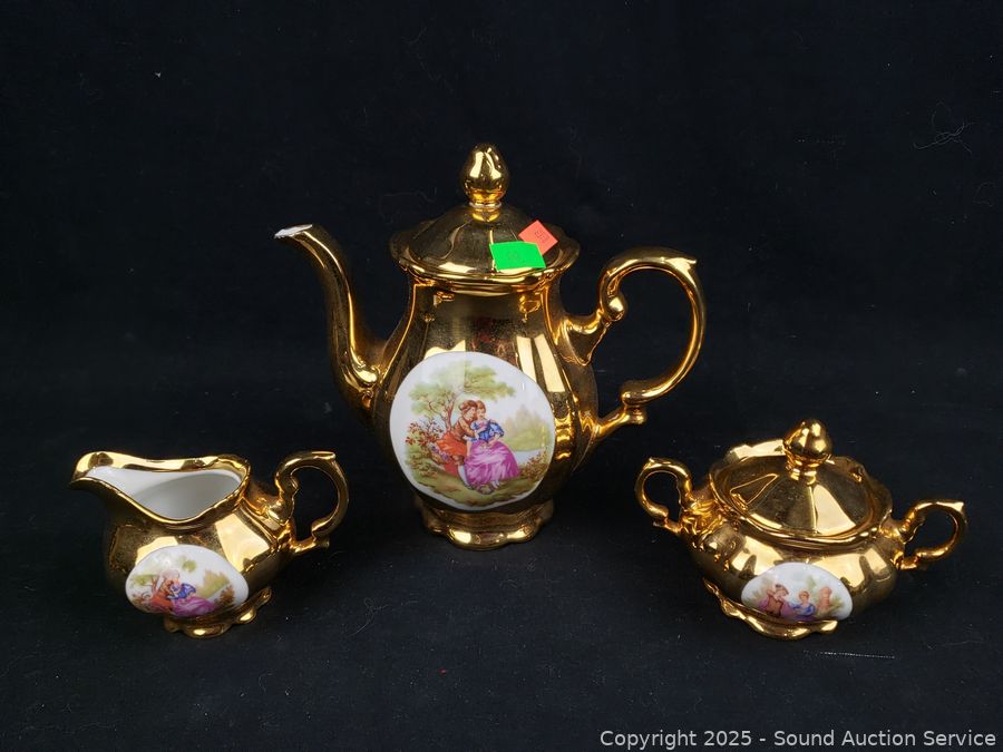 Lot #0099: 15pc Gold Porcelain Foreigen Tea Set