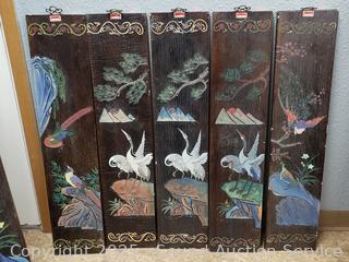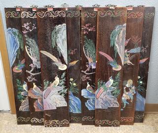 Lot #0304: 11 Carved Wood Painted Asian Panels