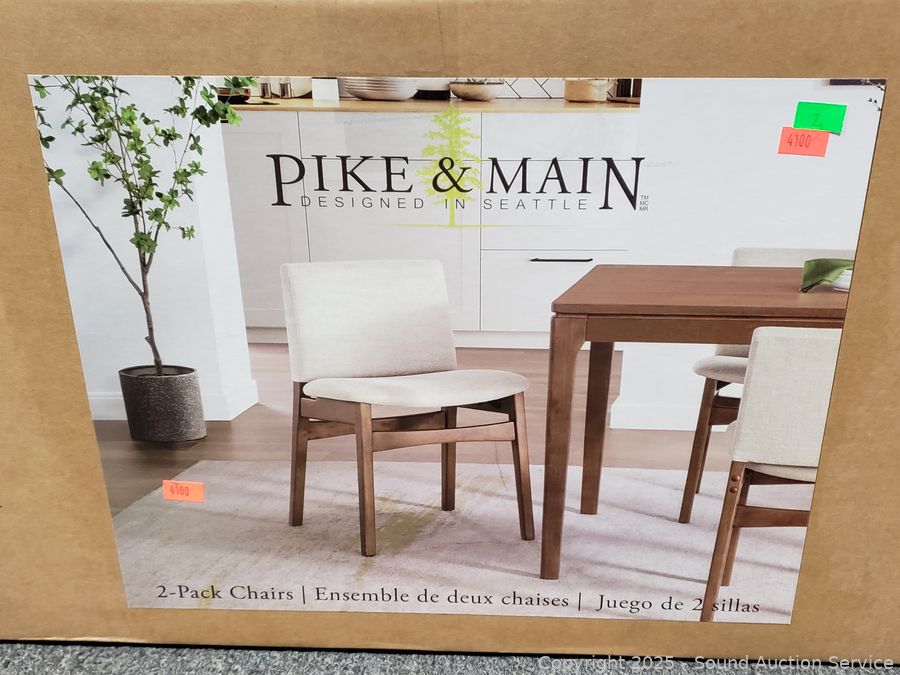Lot #0007: 2pk Pike & Main Stella Beige Upholstered Dining Chairs