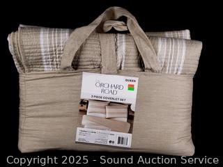 Lot #0221: 3pc On Orchard Road Beige Queen Coverlet Set