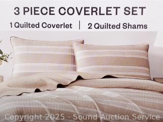 1 coverlet 90" x 98", 2 shams 20" x 30". Don't see any issues.
