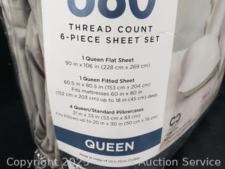 Lot #0237: 6pc Kirkland Gray Queen 680TC Cotton Sheet Set