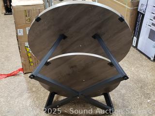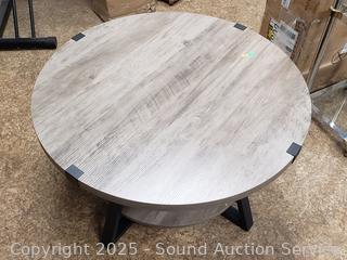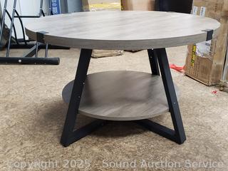 Lot #0280: Contemporary Gray Wood Grain Finish 2-Tier Round Table