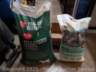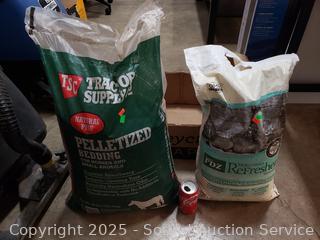 25LB bag of refresher, 40LB bag pelletized bedding. Both appear to be full.