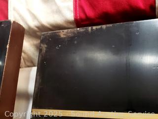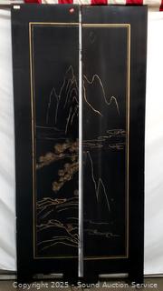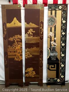 2 panels are matching, none are attached to each other. Some scuffs, dings/chips. 72" H x 16" W panels.