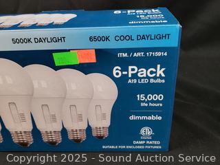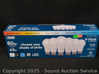 Lot #0280: 6pk Feit LED Dimmable A19 Light Bulbs