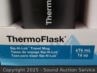 Lot #0129: Thermoflask Sip-N-Lok 16oz Steel Travel Mugs