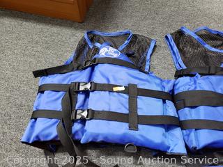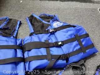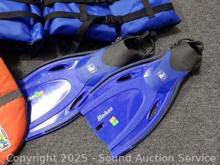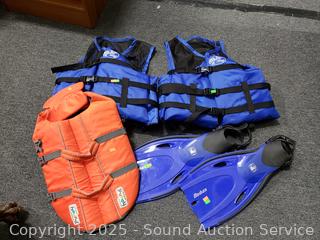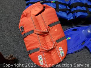 Lot #0110: 2 Human, 1 K9 Life Vests & Swimming Fins