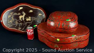 Lot #0020: 3 Vintage Enameled Asian/Oriental Trinket Boxes