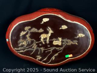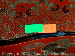 Approx. 5" H x 10.5" to 19" W/L. Some light wear from age, use.