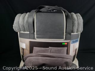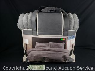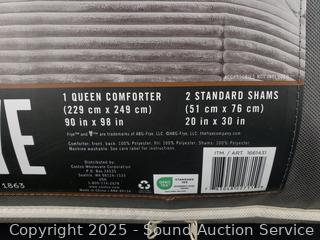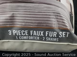 Lot #0038: 3pc Frye Gray Faux Fur Queen Comforter Set