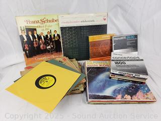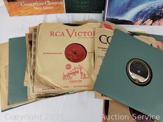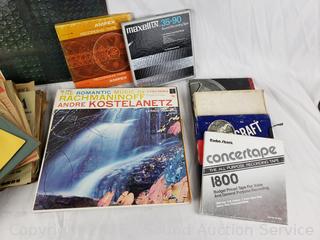 Lot #0159: Assorted 78/33 RPM Vinyl Record Albums & Some 35 Micron Tapes
