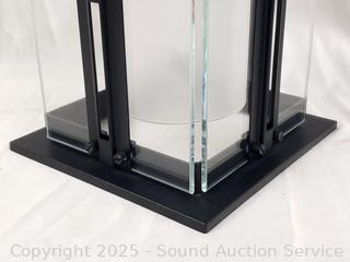 Approx. 11.5" H x 7" W x 8" E. Previously installed, mounting plate is bent out of shape.