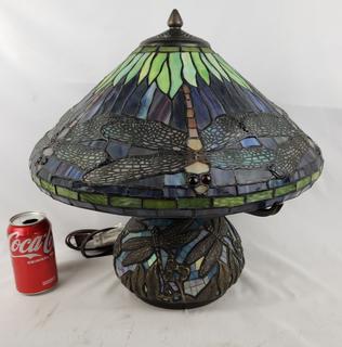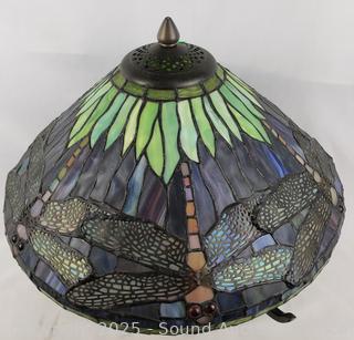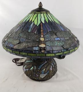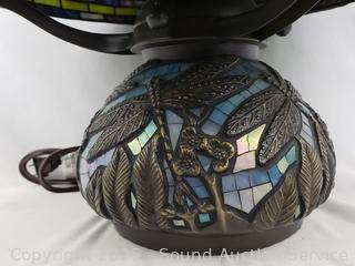 Lot #0010: Unique Mosaic-Stained Glass Dragonfly 3-Light Lamp