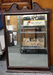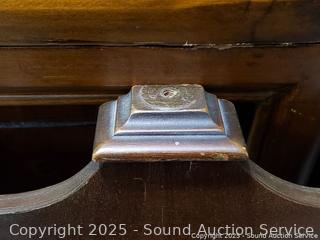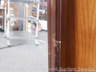 Missing center finial, some scuffs, scratches, wear to finish. 39.5" x 28".
