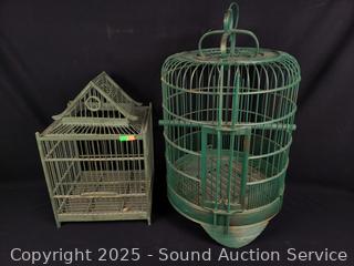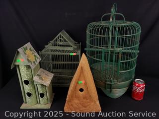 Lot #0016: 2 Birdhouses & 2 Birdcages