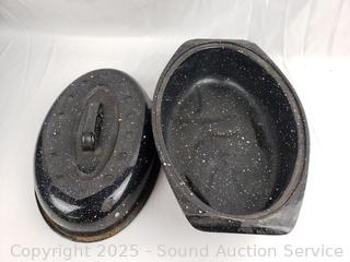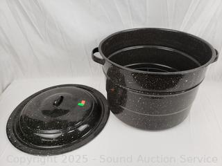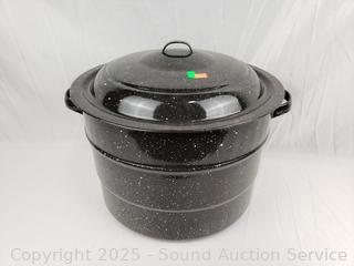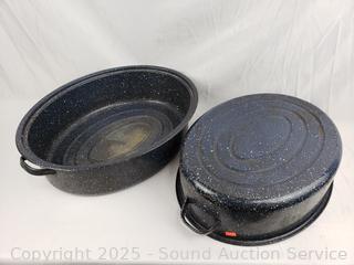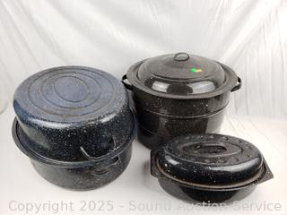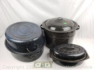 Lot #0073: 2 Enamelware Roasters & 1 Canning Pot