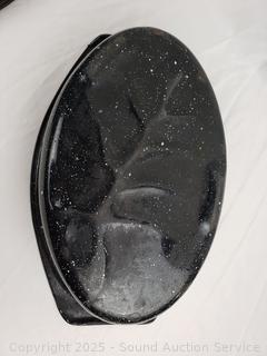 12" & 17" roasters, 9.5" H x 14" Dia. canning pot with insert. Signs of wear from use.