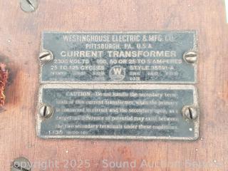 Westinghouse Current Transformer, Thomson Alternating Ammeter, Weston Electrical Voltmeter Model 45. Untested, unknown completeness.