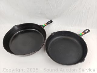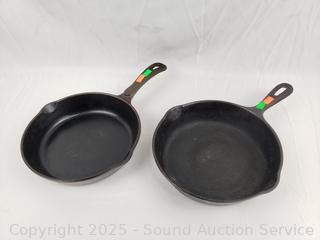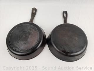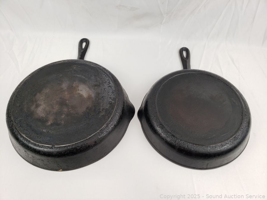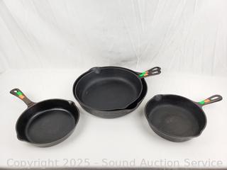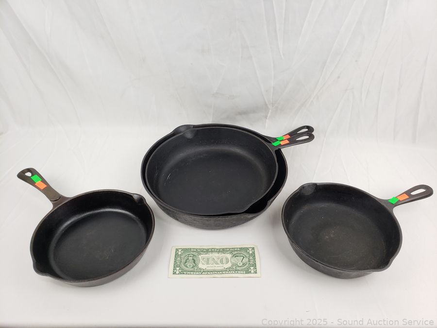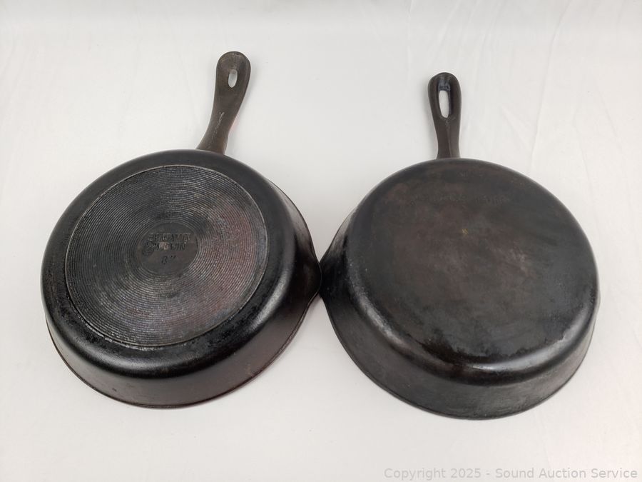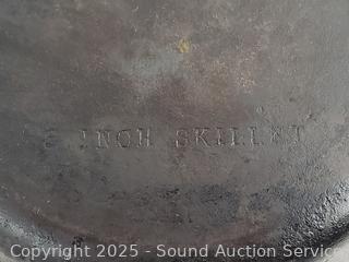 Benjamin Medwin 8", 8" unmarked, 10-5/8" No.8, 12" unmarked. Could use a proper seasoning, cleaning.