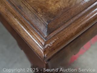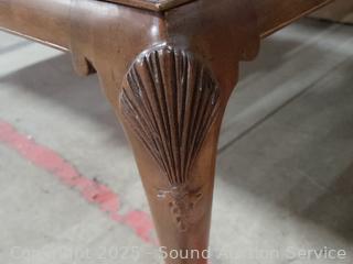Cabriole legs. Approx. 18" H x 40" x 40". In great cosmetic condition.