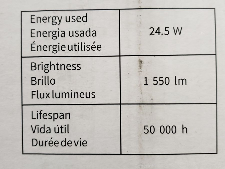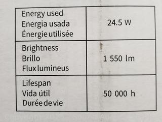 Black & Chrome finish. Appears to be functioning as intended. 7.8" H x 27.5" W x 5.98" D. 24.5 W x 1550LM, 3000K color.