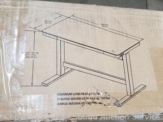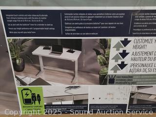 Integrated touch controls, white glass top, USB ports. Approx. 29.4" to 47" H x 47.3" W x 23.7" D. Has power. Appears to be functioning as intended. ATTN: the height adjustment up is not functioning, only the preset heights are available. As is.