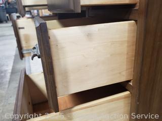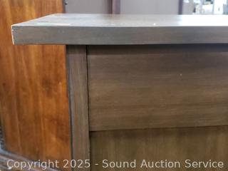 Some scuffs, wear to finish. File drawer is locking, no key. Some minor scuffs, dings. Approx. 30" H x 50" W x 19.75" D.